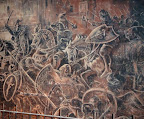 I found the caves had been dug in about 1050, before the castle was built. Afterwards, they were used by rulers to move their knights and armies around behind the enemy for surprise attacks, as well as for storing supplies. Later, they’d been used by people fleeing religious persecution in the 1500’s and 1600’s, and altars had been erected so that they could worship in secret. Murals documenting the history of the caves had been painted there: of wars and faith and survival.