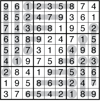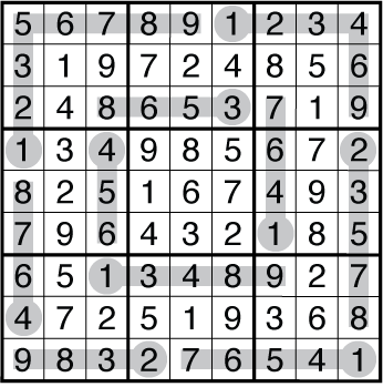 As the story goes, one day Dr. Sudoku was boiling up a new sudoku solution in the lab when his thermometer accidentally melted into the concoction and mixed with all the numbers. When he poured the solution out onto paper grids, the resulting puzzles had some unusual features to them -- namely thermometer shapes in the grid that contained strictly increasing digits from the bulb of the thermometer to the end. The new less-than–greater-than constraints made for good puzzles, so Dr. Sudoku kept these "mistakes" to show off from time to time.